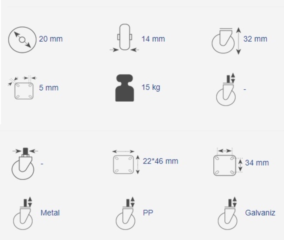 HTS 100 SABİT TEKER SABİT TEKELEK SERİSİ-4 ADET GÖNDERİLECEKTİR.İÇ MEKAN KULLANIMINA UYGUNDUR.