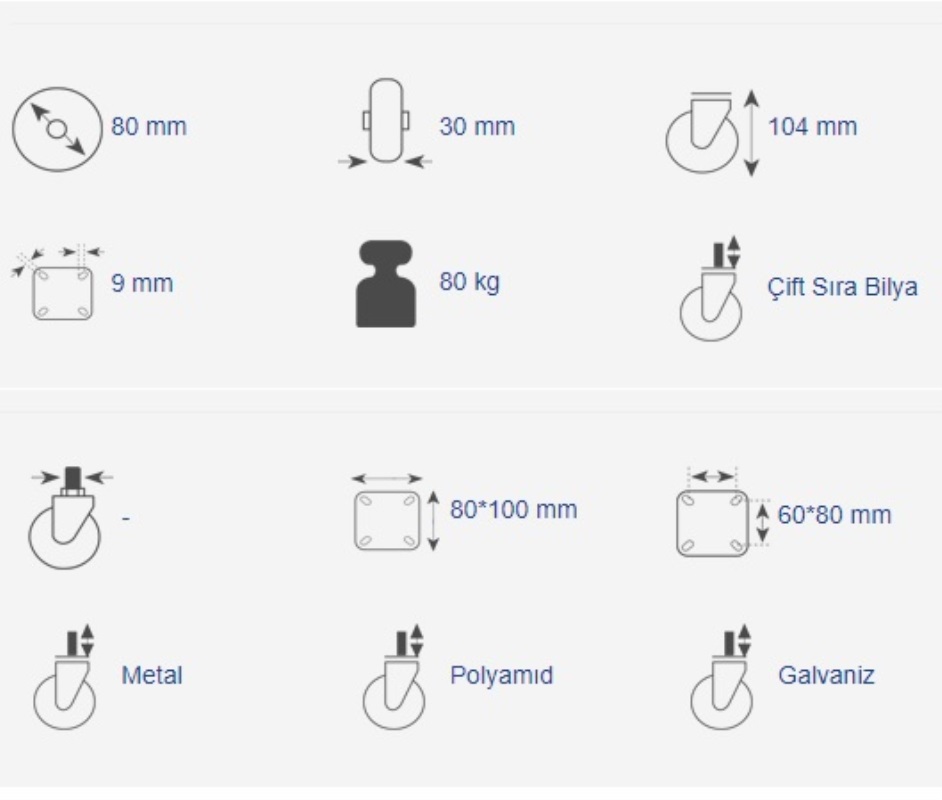 HTS 629 POLYAMİD 80 LİK TABLALI FRENLİ TEKER-4 ADET GÖNDERİLECKTİR.-İÇ KULLANIMA UYGUNDUR-HAFİF SANAYİ POLYAMİD TEKERLEKLER
